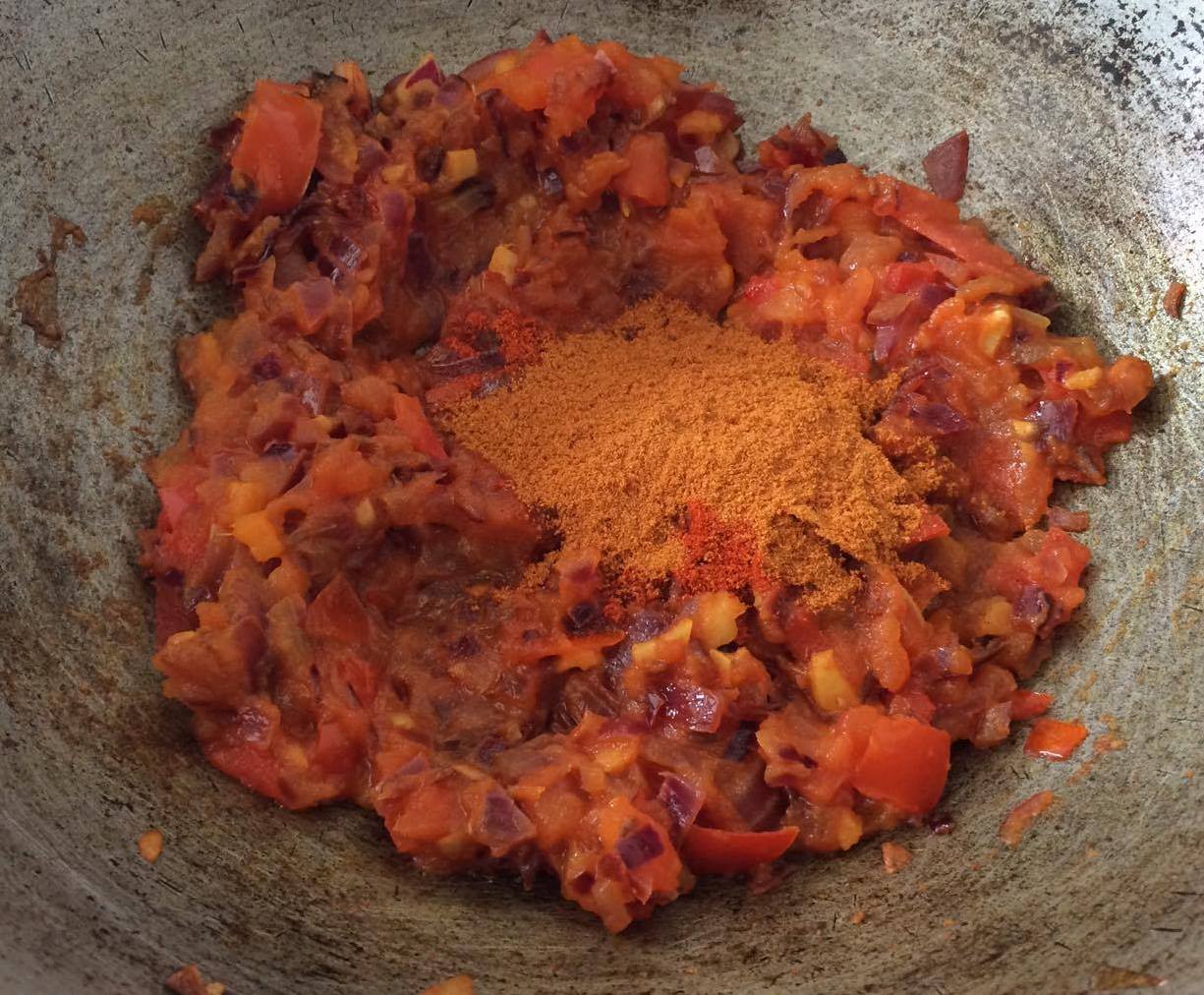 - Saute chopped onions and tomatoes.